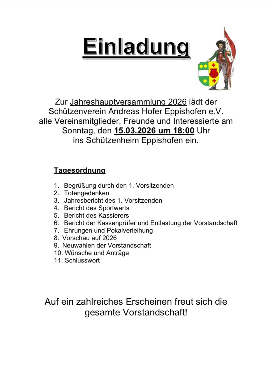 Liebe Schützinnen und Schützen, hier die Termine für das aktuelle Jahr 2026